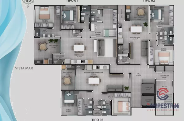 2 e 3 suítes