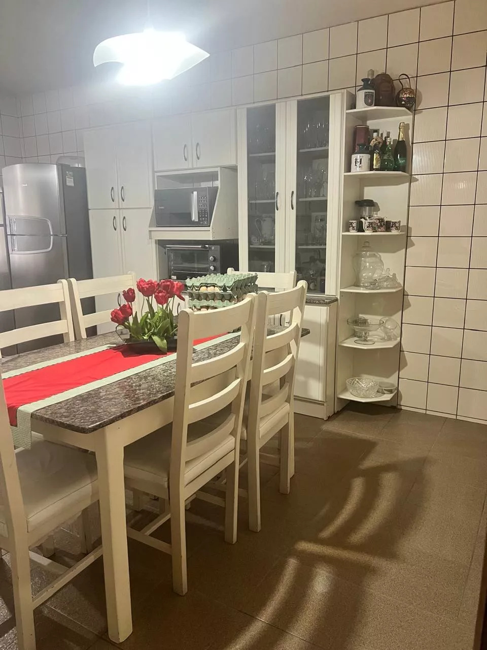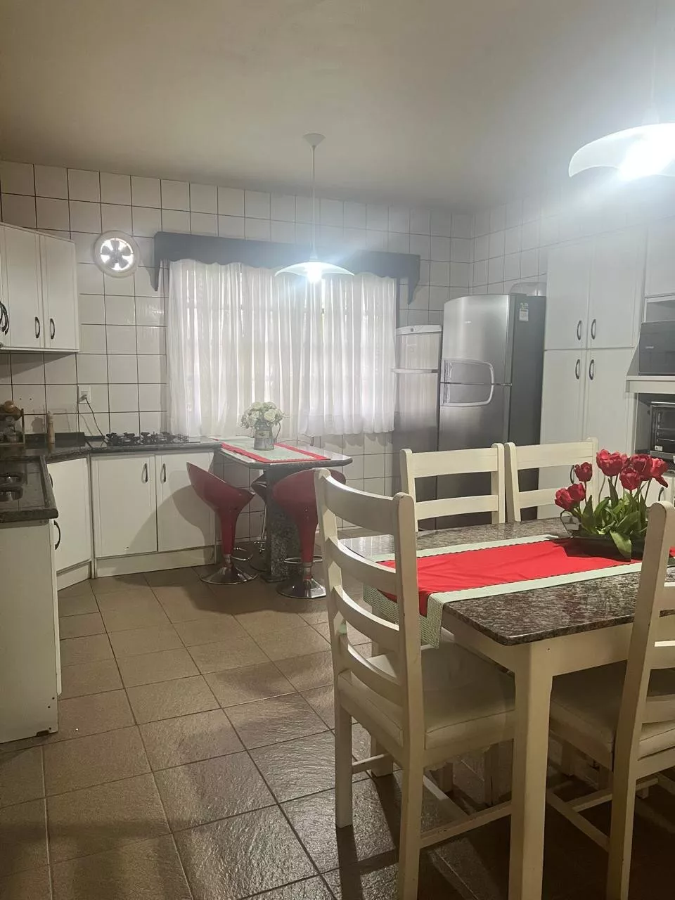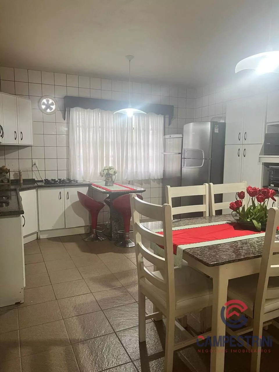 Terreno com área de 547,00m², edificado com casa em alvenaria contendo: uma suíte mais 3 quartos, 2 banheiros sociais, sala de tv, sala e cozinha, lavanderia, dispensa e área de festas com churrasqueira, fogão a lenha, fogão cooktop, pia, bancada em granito com 265,00 m² sendo estes 30,00 m² de garagem.