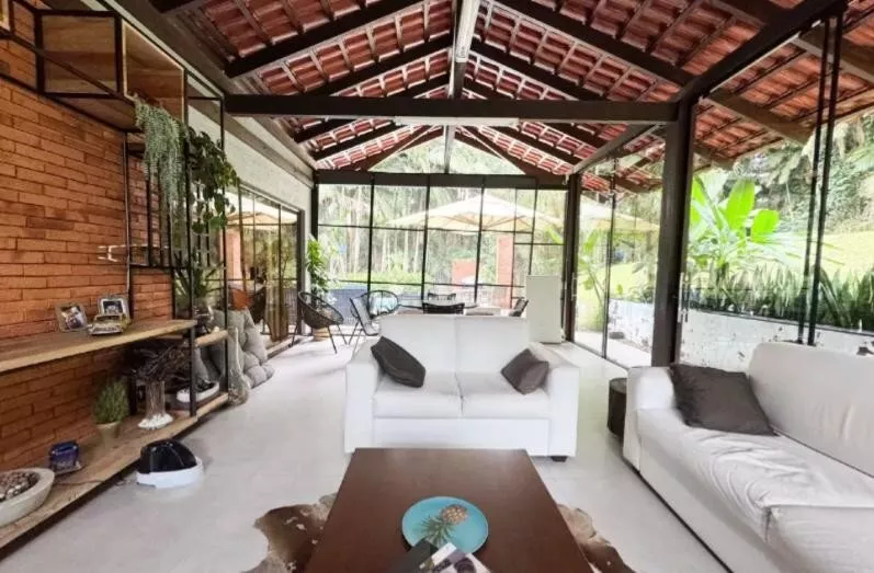 Sala ampla com lareira