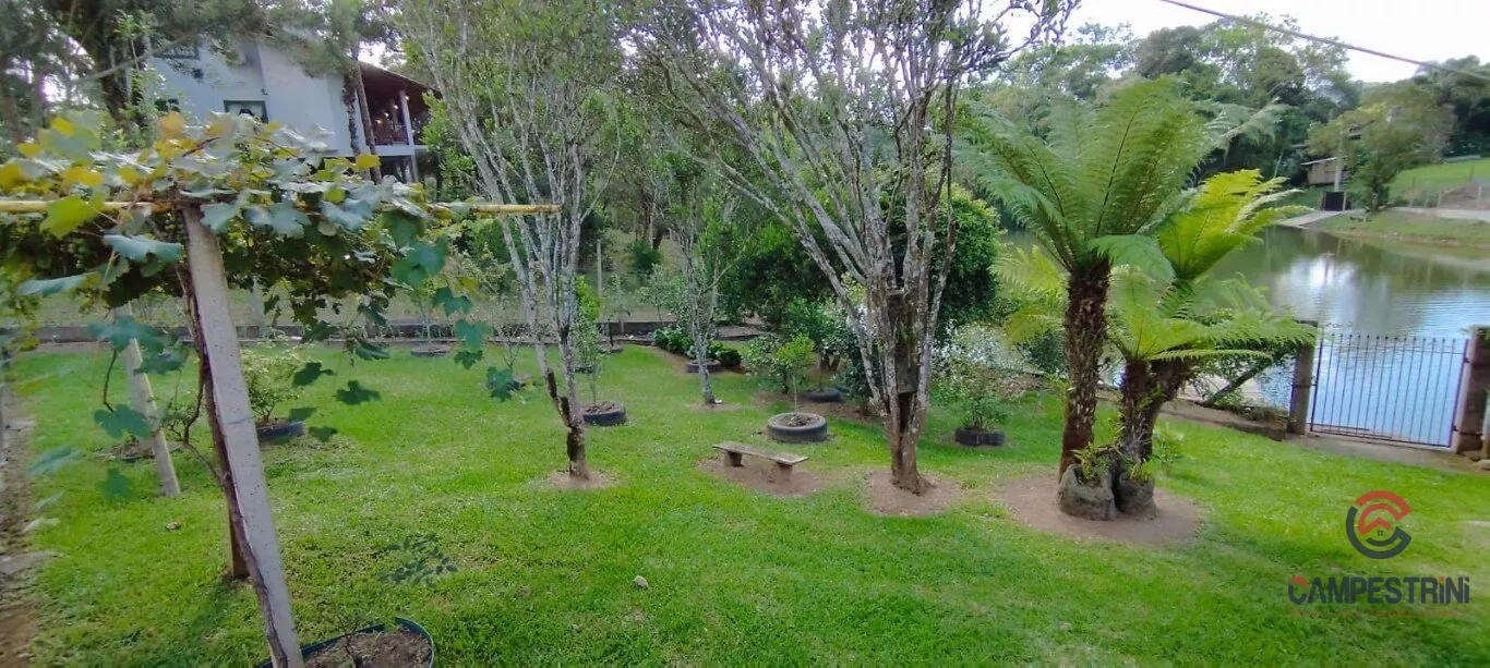 terreno todo cercado, acesso a barragem com deck, área de gramado com balanço duplo e área com árvores frutíferas.