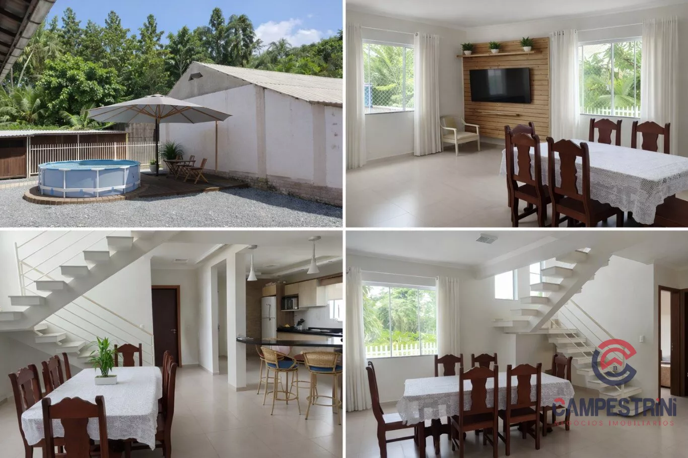 - Parte superior: 3 quartos (sendo 1 suíte), 2 banheiros e 2 varandas